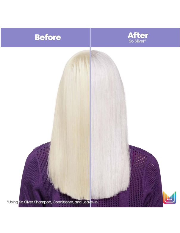 Passez au niveau supérieur avec le masque So Silver Triple Power. Illuminez et éliminez les reflets jaunes indésirables des cheveux blonds, ajoutez de magnifiques reflets argentés aux cheveux platine ou transformez vos cheveux gris en un éclat argenté. Son soin exceptionnel laisse les cheveux soyeux et sa technologie progressive permet de tonifier selon l'effet souhaité.
