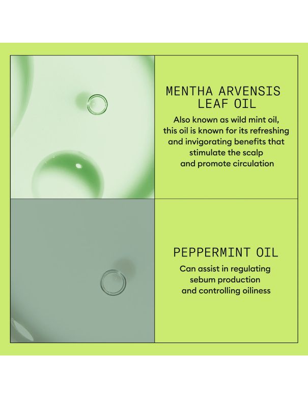 Ingrédients phares : Formulé avec un puissant mélange d’huiles essentielles de menthe sauvage et de menthe poivrée, sa formule légère et hydratante contient des ingrédients qui renforcent les cheveux contre les dommages et la casse, tout en favorisant un cuir chevelu plus sain.