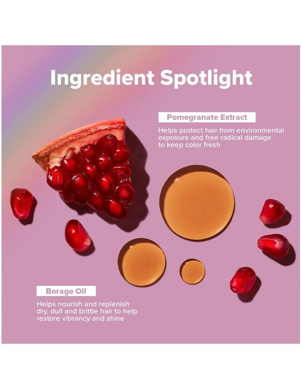 - Extrait de grenade : riche en vitamines et antioxydants connus pour aider à protéger les cheveux de l'exposition environnementale et des dommages causés par les radicaux libres, aidant à garder la couleur fraîche plus longtemps.