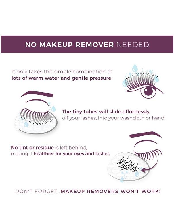- Only the combination of lots of warm water and gentle pressure, from your fingertips, a washcloth or water pressure (i.e. shower), will slide the tiny tubes off your lashes effortlessly.