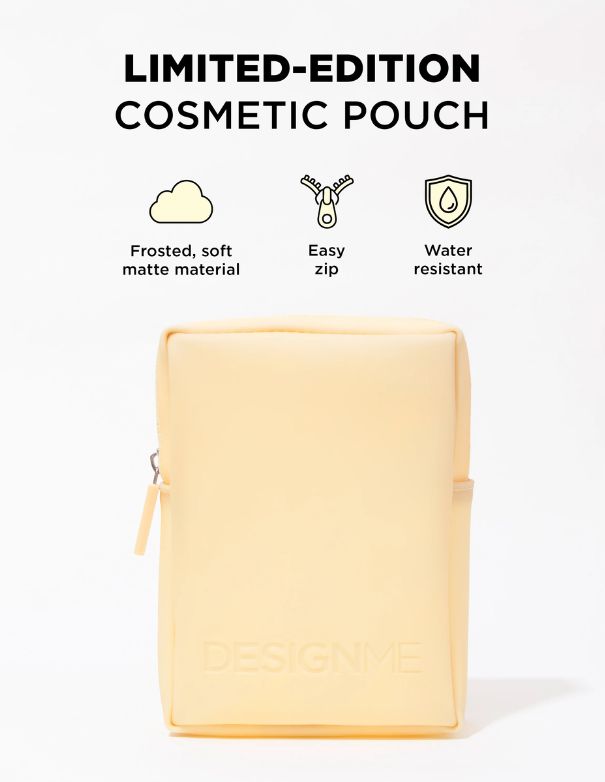• A reusable water-resistant cosmetic pouch