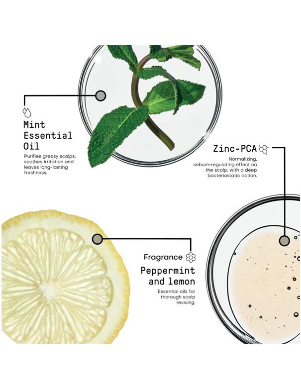 Aqua (Water), Sodium C14-C16 Olefin Sulfonate, Cocamidopropyl Betaine, Citrus Limon (Lemon) Peel Oil, Citrus Limon (Lemon) Peel Extract, Mentha Piperita (Peppermint) Oil, Arginine, Pyroxidone HCl, Melaleuca Alternifolia (Tea Tree) Leaf Oil, Zinc PCA, Disodium Coco-Glucoside Citrate, Sodium Cocoamphoacetate, Citric Acid, Coco-Glucoside, Glyceryl Oleate, Ricinoleamidopropyl Dimethylamine, Polyquaternium-10, Polyquaternium-7, Undecylenamidopropyl Betaine, Caramel, Sodium Benzoate, Potassium Sorbate.